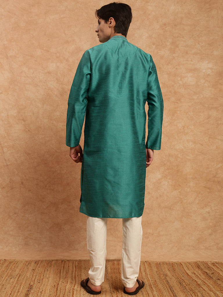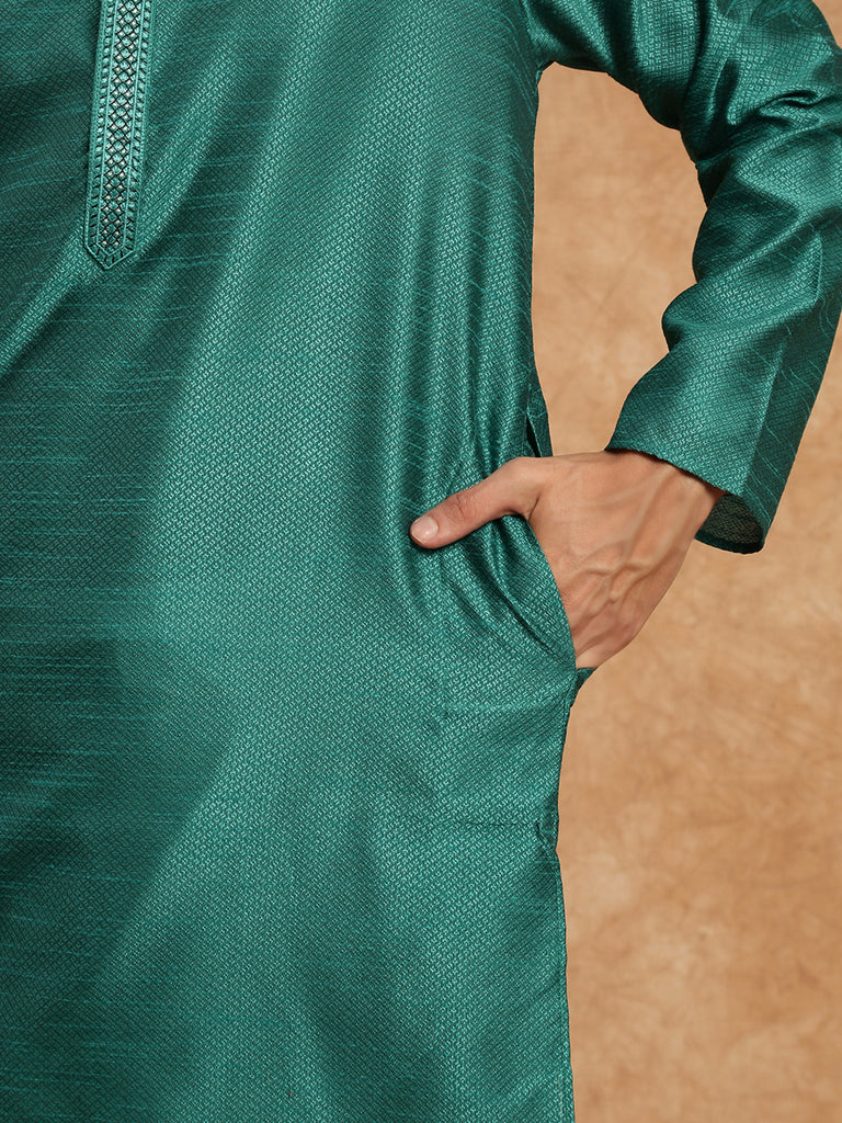 Men's Stylish Green Solid Traditional Silk Kurta Set by Sanwara