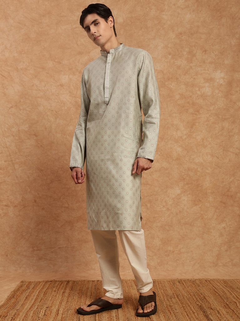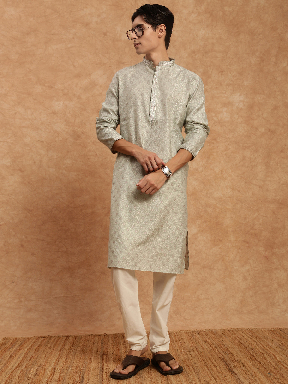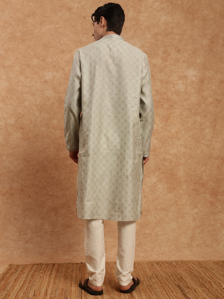 Sanwara Premium Jaquard Embroidered Sea Green Kurta Set for Men