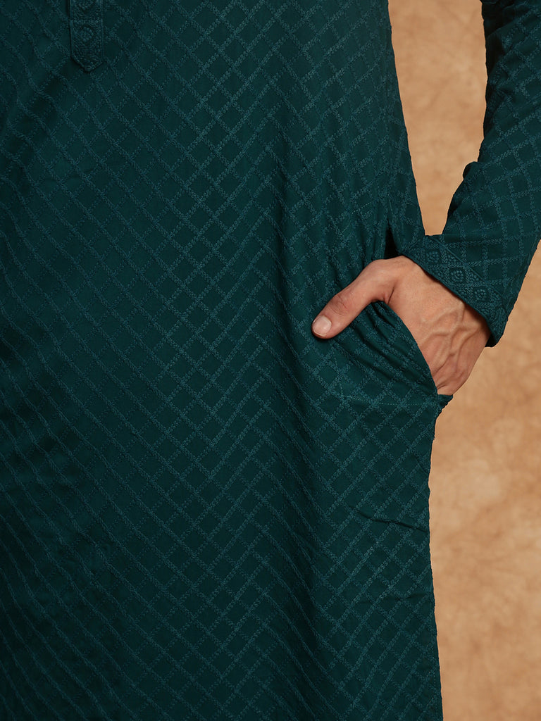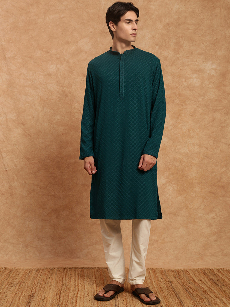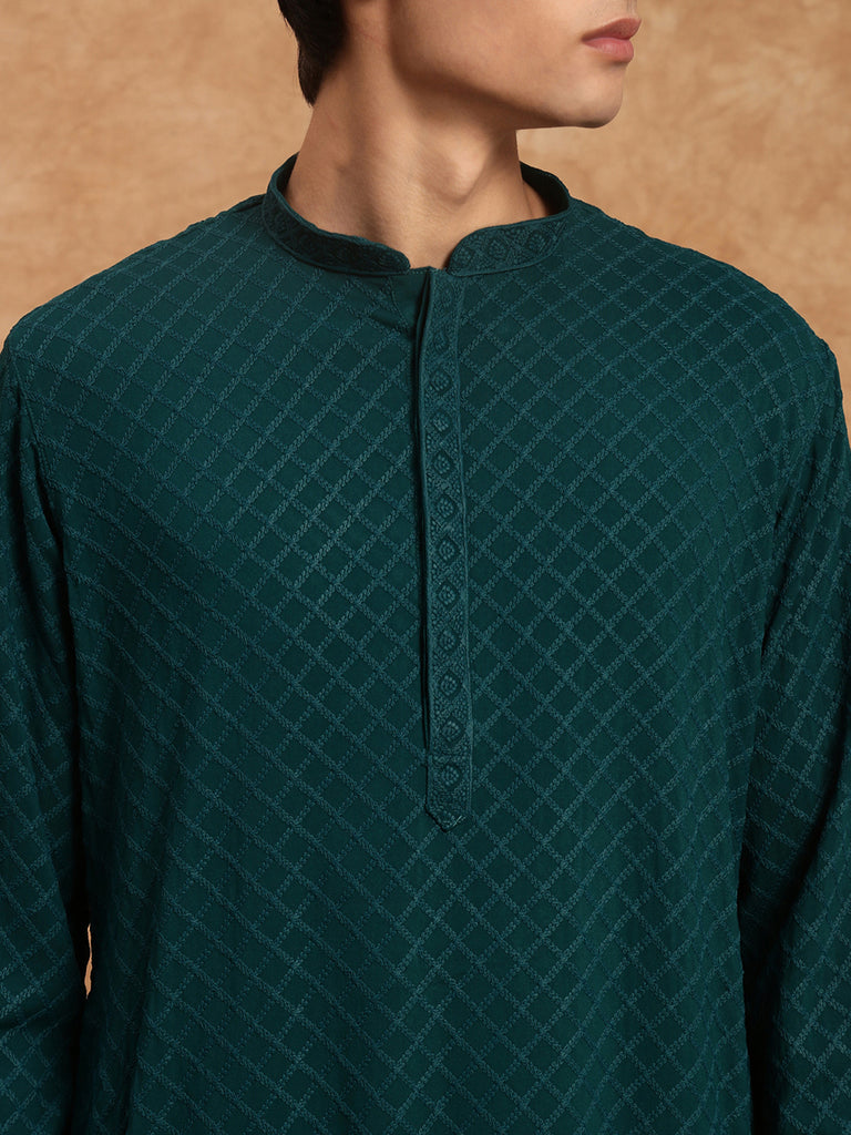 Sanwara Men's Rayon Ethnic Solid Firozi Chikankari Work Stylish Festival Wear Kurta Set