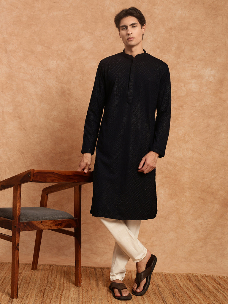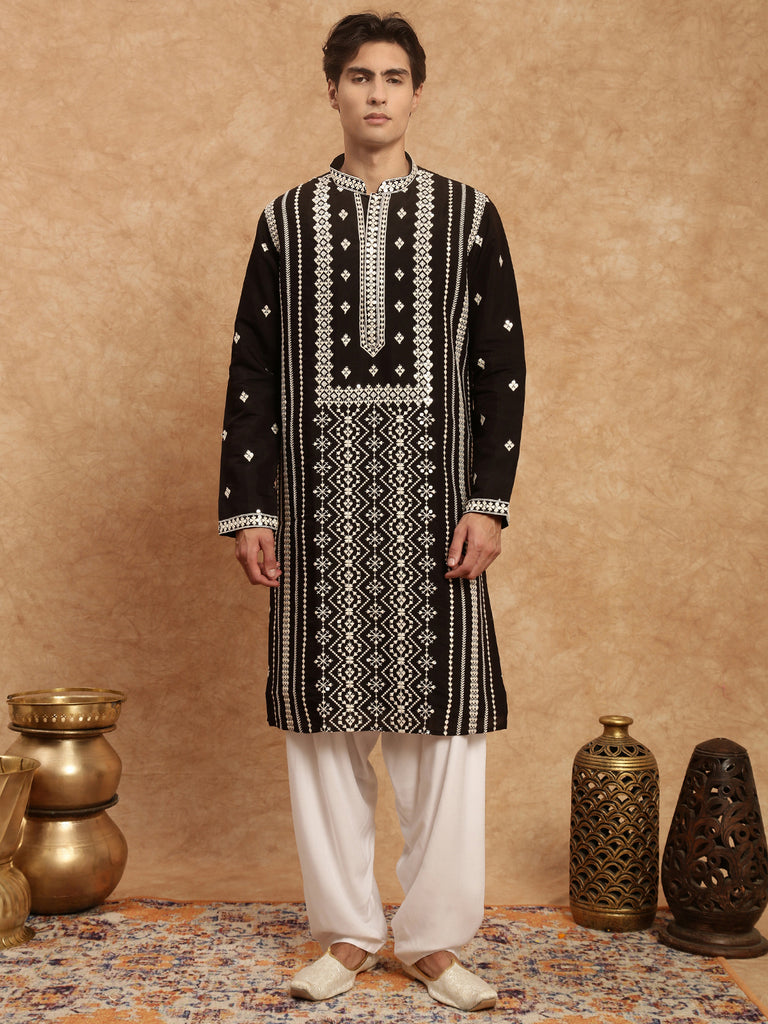 Sanwara Black Elegance Men's Chikankari Work Kurta Set