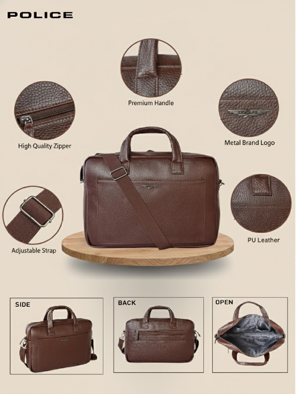 This Laptop Bag Comes With One Main Compartment And With Two External Slip-In Zipper Pocket at Front Part. Back Side One Zipper Pocket And With Trolley Strap. Inside Back Wall Laptop Compartment , Inside Front Wall Two Slip In Pocket. It Has Detachable And Adjustable Shoulder Handle.