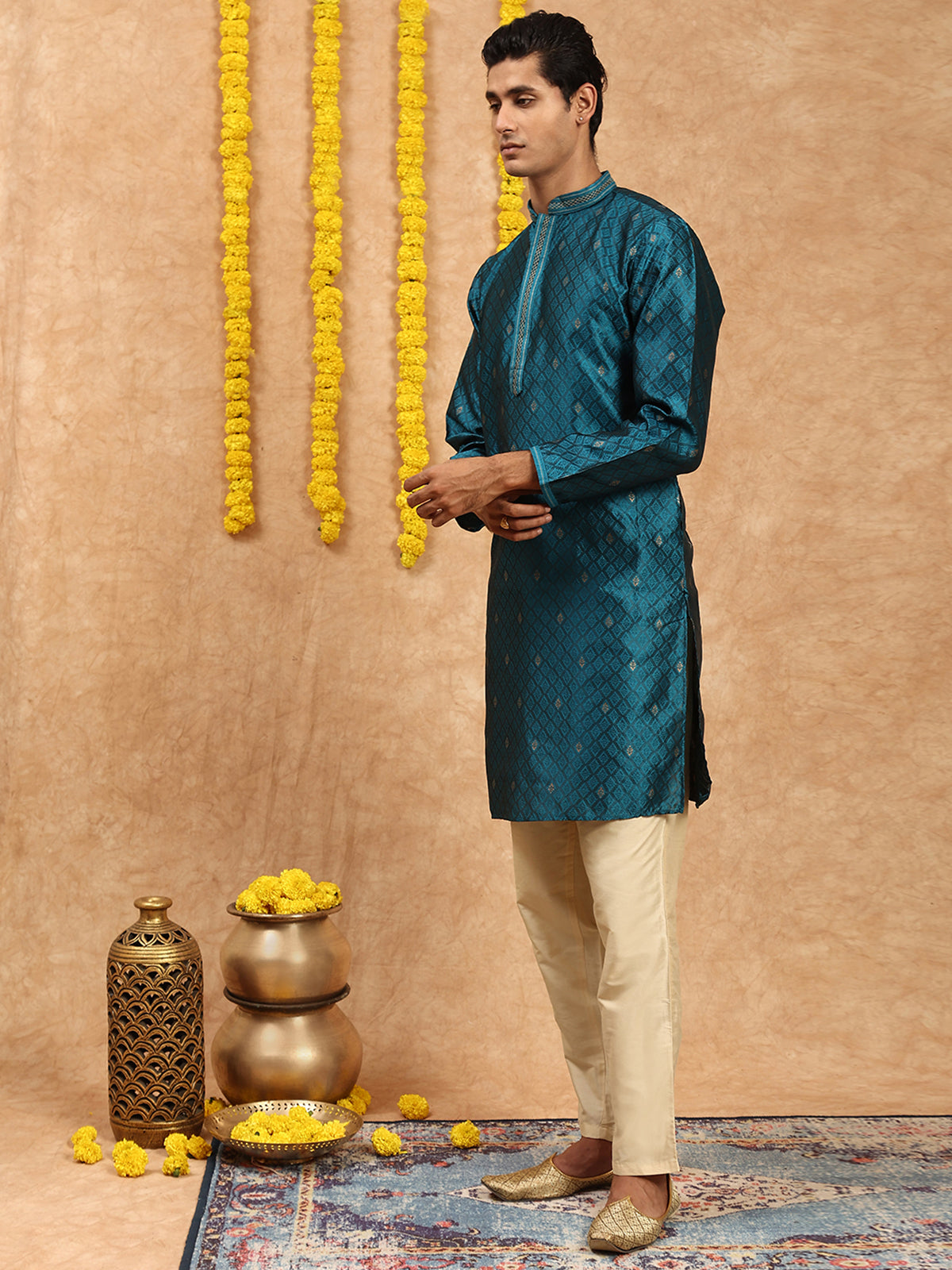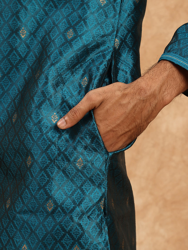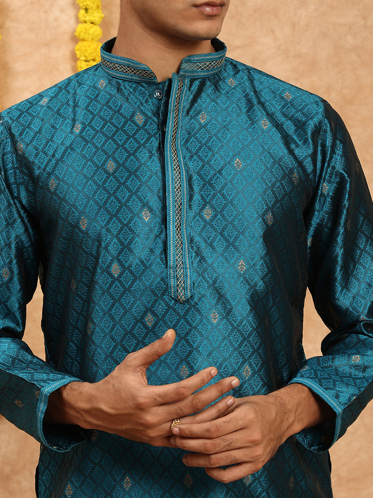 Sanwara Men’s Firozi Woven Designer Jaquard Kurta
